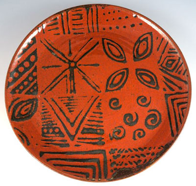 Adire plate: Inspired by Yoruba textile designs.Occasionally, I'm able to do indigo-dyed batik. See HERE.