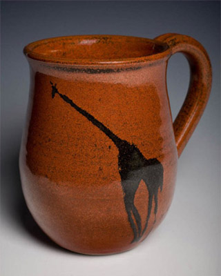 Giraffe mug: The rabbit and giraffe are probably the oldest animal images I use. Both come from rock carvings in Southern Libya dating back about 7000 years. At that time the the region we now know as the Sahara was a lush, green savannah, much like the Serengeti is now. |