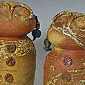 In West Africa, shrine figures are guardian figures found in shrines. They are sacred figures, representing spirits or gods and offering protection. Their forms are highly stylized. The figure on the left (below) is an ancestor figure from the village of Obire in Burkina Faso. It was one of a series of figures, each representing a king in a long-lasting dynasty.
