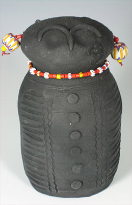 Saggar Fired Figure: Saggar fired with Ghanaian glass beads.