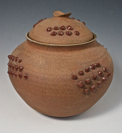 Fetish pot: Unglazed stoneware with glazed slip knobs. Fetish pots in West Africa are used to hold herbs used for healing and rituals. They are often covered with applied knobs or bumps. 2007